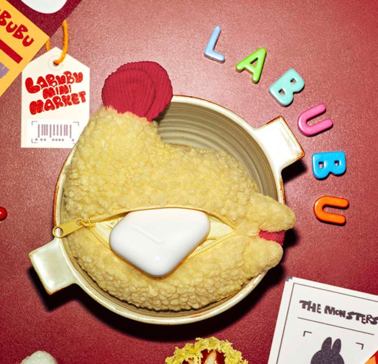 POP MART's 2025 new release, The Monster Wacky Mart series, features this creativily designed earphone case that combines playful aesthetics with practical functionlity. Inspired by the iconic shape of tempura, the case showcases Labubu's expressive face crafted from 3D silicone, while its body is made of plush fabric for a delightful tactile contrast.