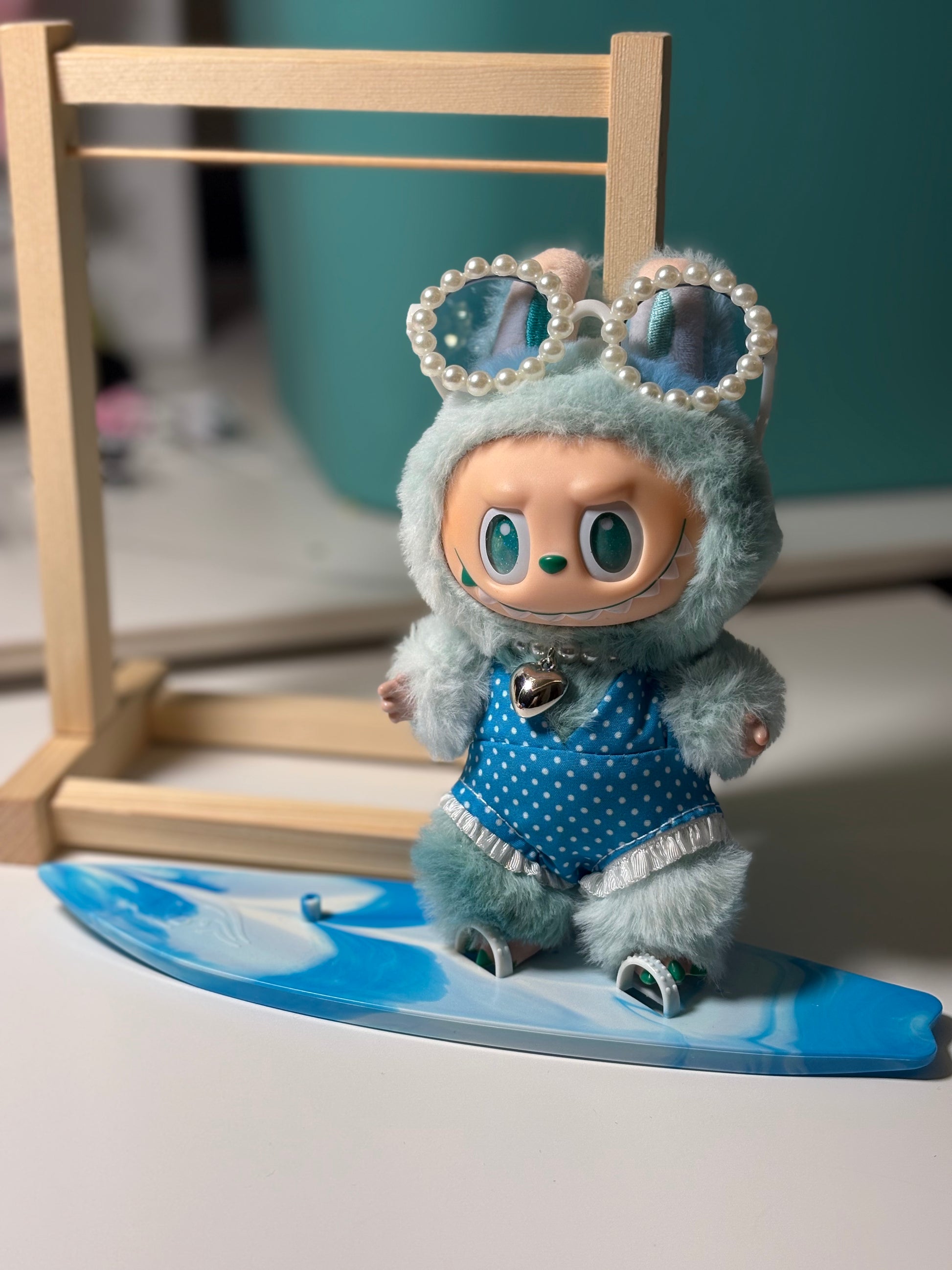 This adorabke Labubu set brings the perfect vacation vibes! Designed with a bold, eye-catching style, the set includes: